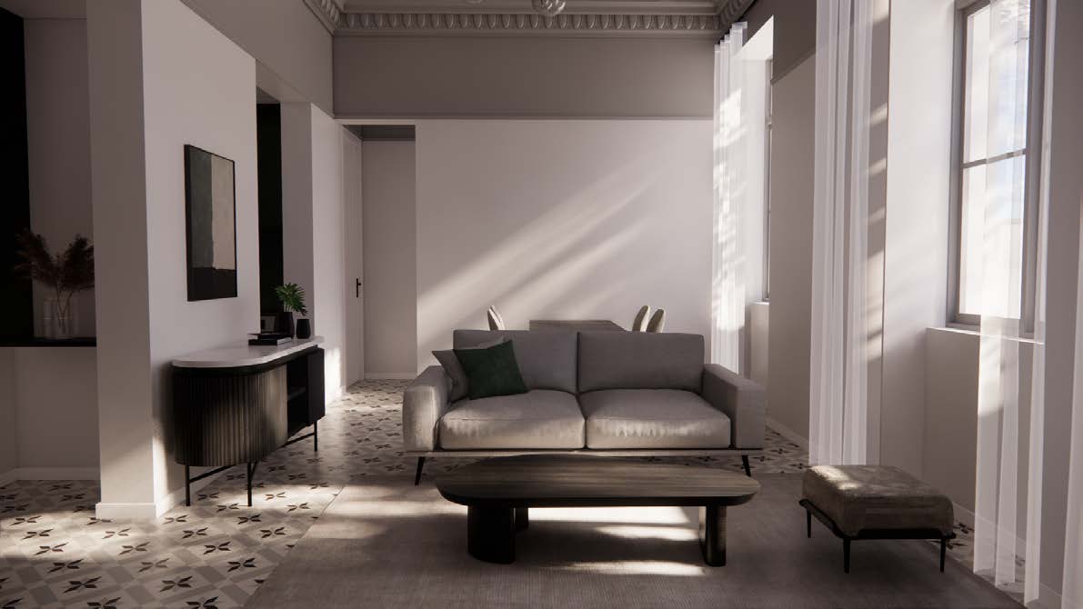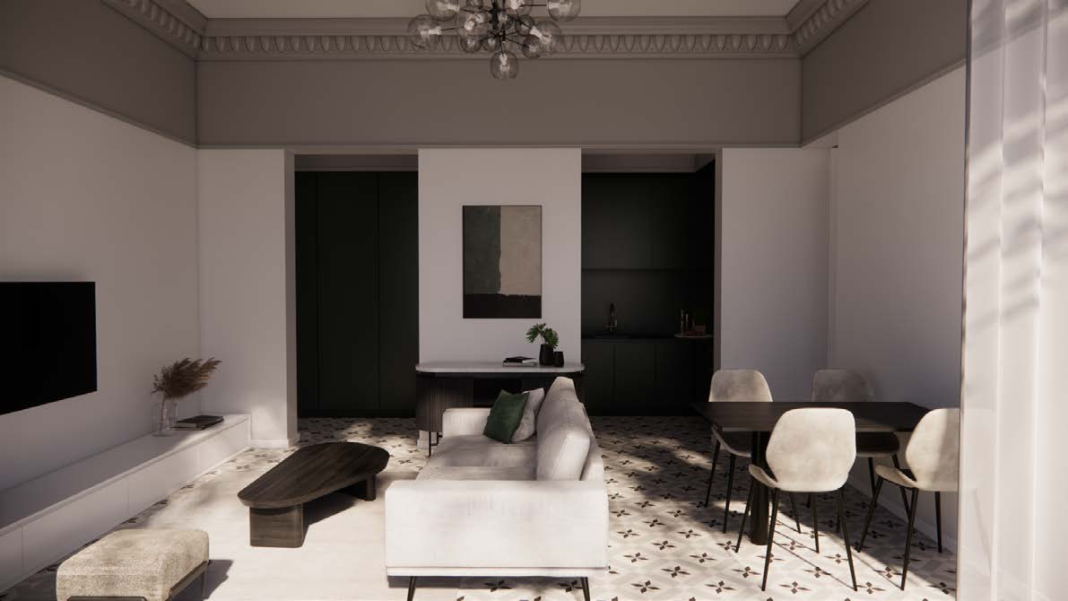 A historical Athenian building in the heart of Exarcheia was reimagined into four refined city apartments that balance preserved character with contemporary living. The design captures the building’s architectural heritage through light-filled rooms, neutral palettes, and geometric floor patterns, while discreet interventions introduce a sense of modern finesse.